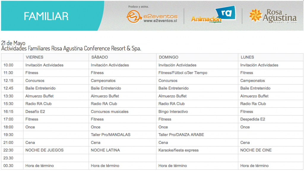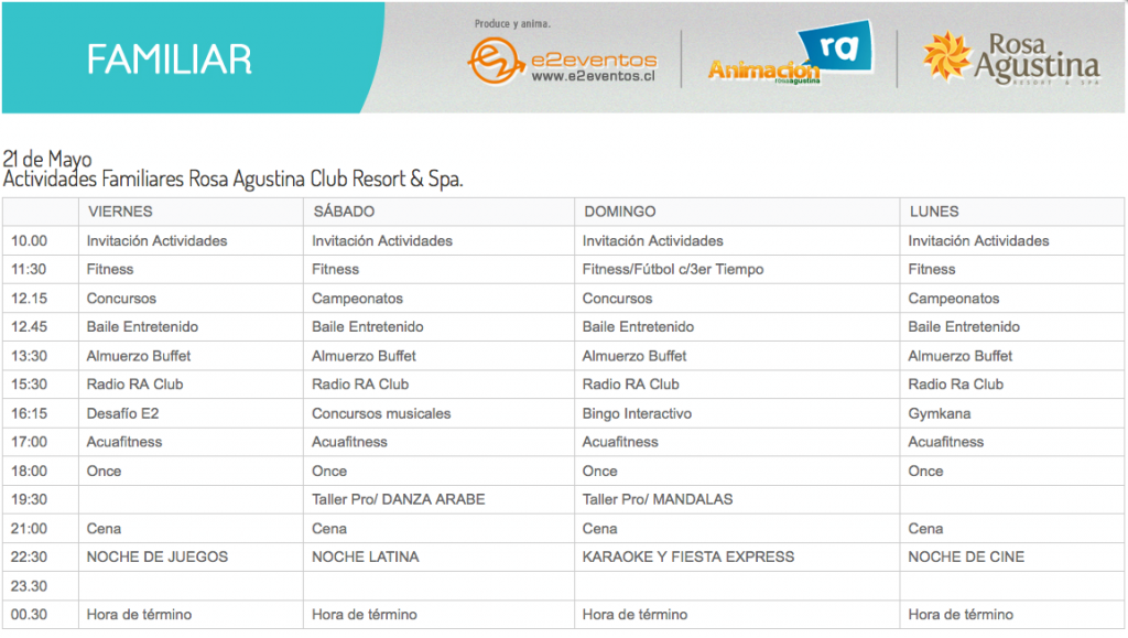 Disfruta este fin de semana largo en Rosa Agustina Resort con nuestro espectacular Pack de 2 o 3 noches con Sistema All Inclusive y déjate encantar por las actividades que tenemos diseñadas para toda la familia junto a nuestros profesionales de la entretención e2 eventos!!.