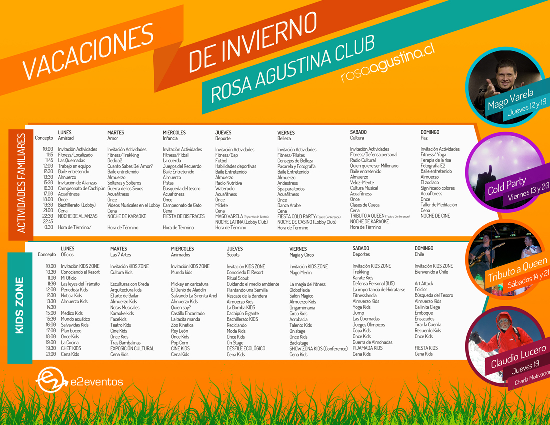 Actividades exclusivas y destacadas por resort, espectáculos nocturnos con grandes presentaciones artísticas, 12 horas continuas de Mini Club, Spa, 2 piscinas temperadas en Rosa Agustina Club y una excelente gastronomía internacional son algunas de sorpresas que lo esperan.