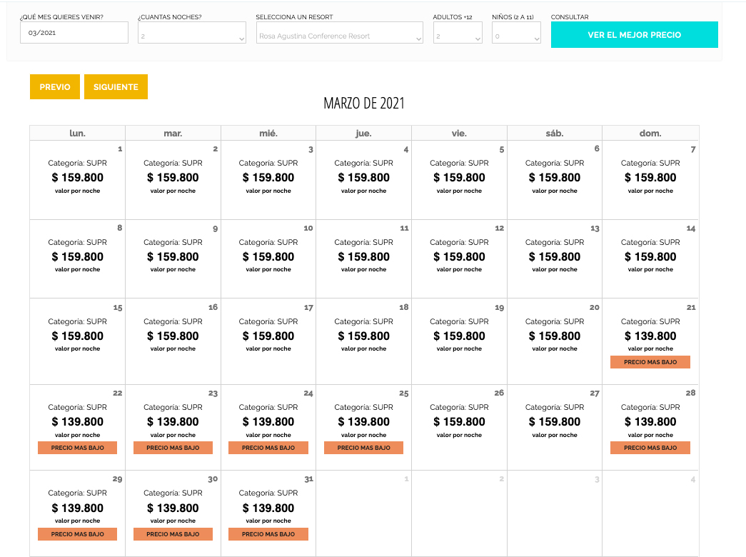 TARIFAS VÁLIDAS EN HABITACIÓN ESTÁNDAR EN ROSA AGUSTINA CLUB Y HABITACIÓN SUPERIOR EN ROSA AGUSTINA CONFERENCE.