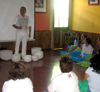 Taller de Relajación, donde se enseñan Técnicas de Relajación para usar en casa, eso va con la experiencia de cuencos.